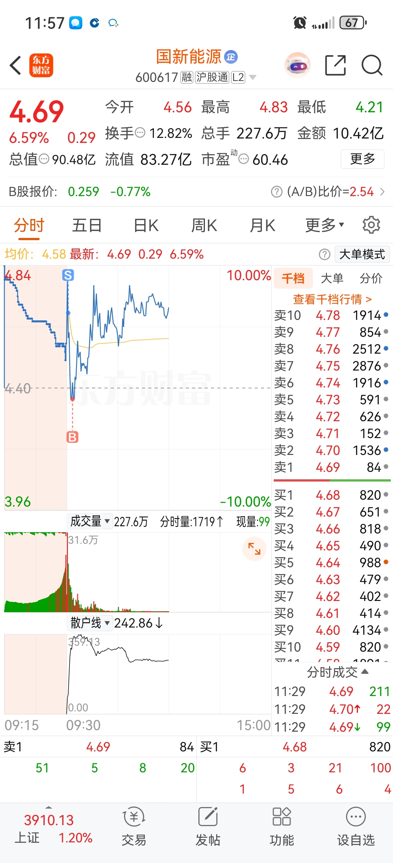 $国新能源(SH600617)$ 又是骚操作的一天,成本直接干到页面看不见#炒股日记# #实盘记录#
