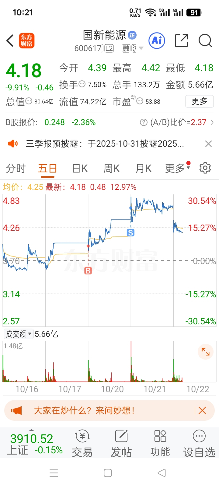 $国新能源(SH600617)$ 昨天成功逃顶