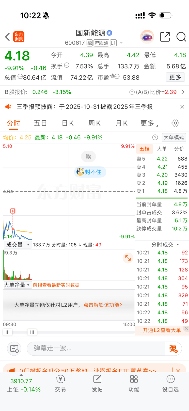$国新能源(SH600617)$ 收盘来看,不服来战!