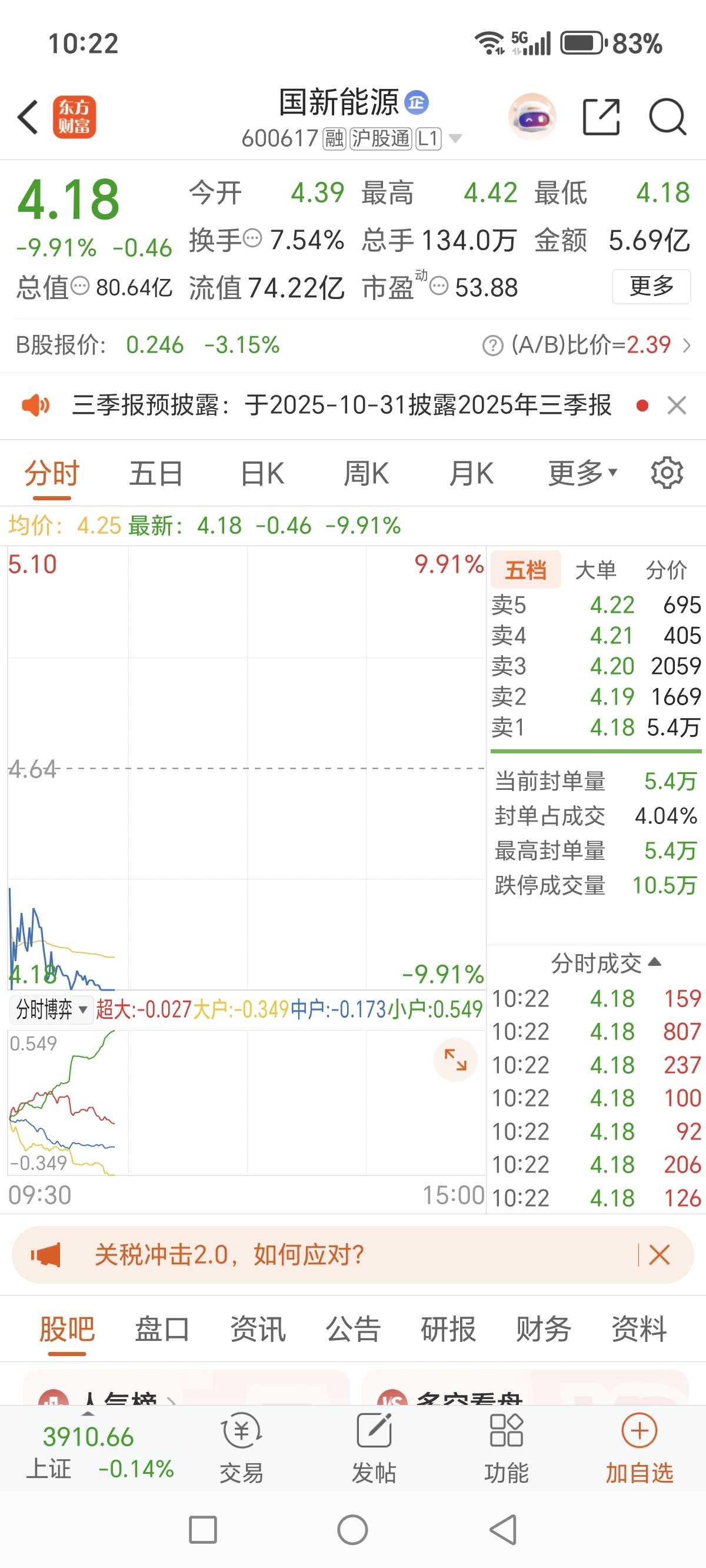 $国新能源(SH600617)$ $上证指数(SH000001)$ 我朋友问我这个股能抄底嘛?我该怎么回答他?
