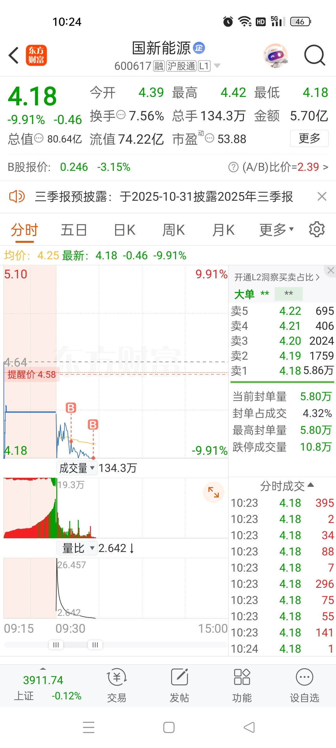 $国新能源(SH600617)$ 翘地板