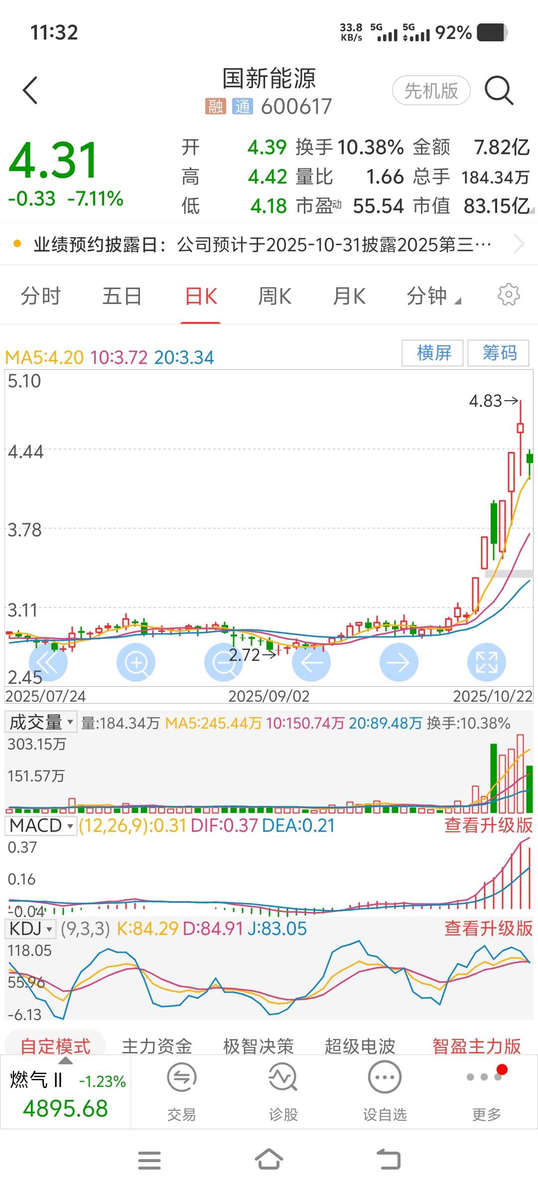 $国新能源(SH600617)$ 涨了那么多天,还没翻倍,今天如果来个地天,这股绝对是年前的妖股,绝对能上10元!