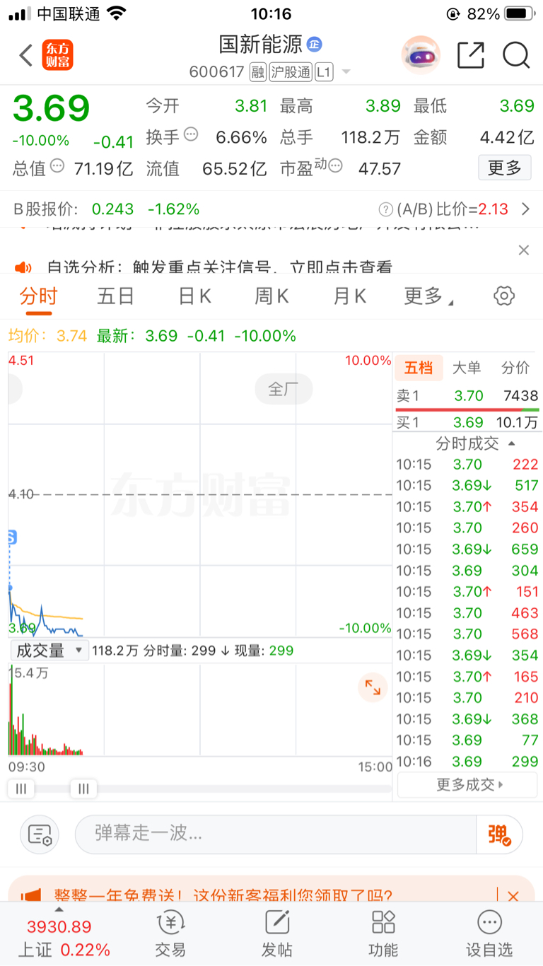 $国新能源(SH600617)$ 开盘卖了留了底仓,周一如果低开杀到水下5个点,我就接回来