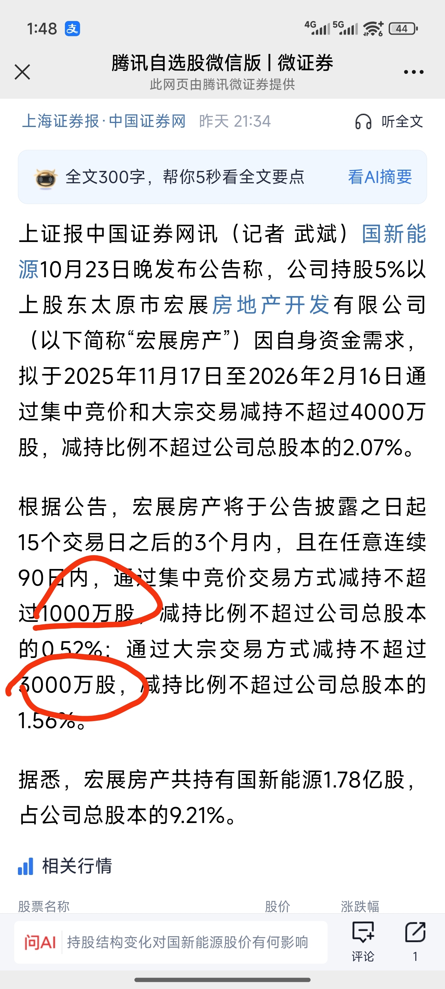 $国新能源(SH600617)$ 集中竞价不超过10万手,其他走大宗交易减持不超过30万手。总共不超过40万手。今天已经成交160多万手。大股东明显配合大资金打压股价拿低位筹码。