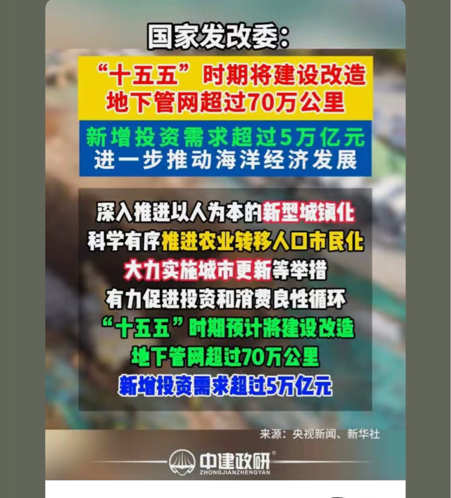 - **直接业务对接**:公司主营的燃气管道网络建设与"十五五"地下管网建设规划高度契合,预计可获得大量新增订单