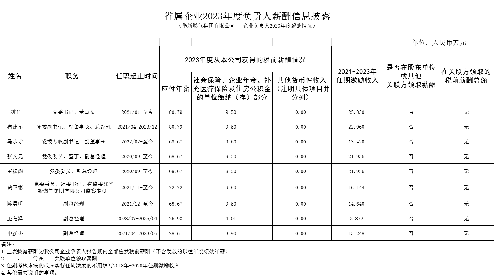 省属企业2023年度负责人薪酬信息披露