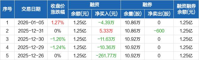 国新能源:融资净偿还4.39万元,融资余额1.25亿元(01-05)