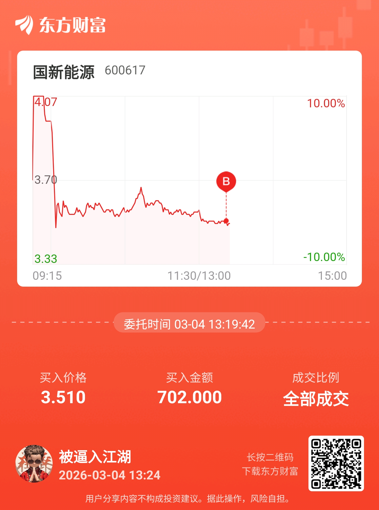 温馨提示: 1.根据《证券法》规定,禁止编造、传播虚假信息或者误导性信息,扰乱证券市场;2.用户在本社区发表的所有资料、言论等仅代表个人观点,与本网站立场无关,不对您构成任何投资建议。用户应基于自己的独立判断,自行决定证券投资并承担相应风险。《东方财富社区管理规定》