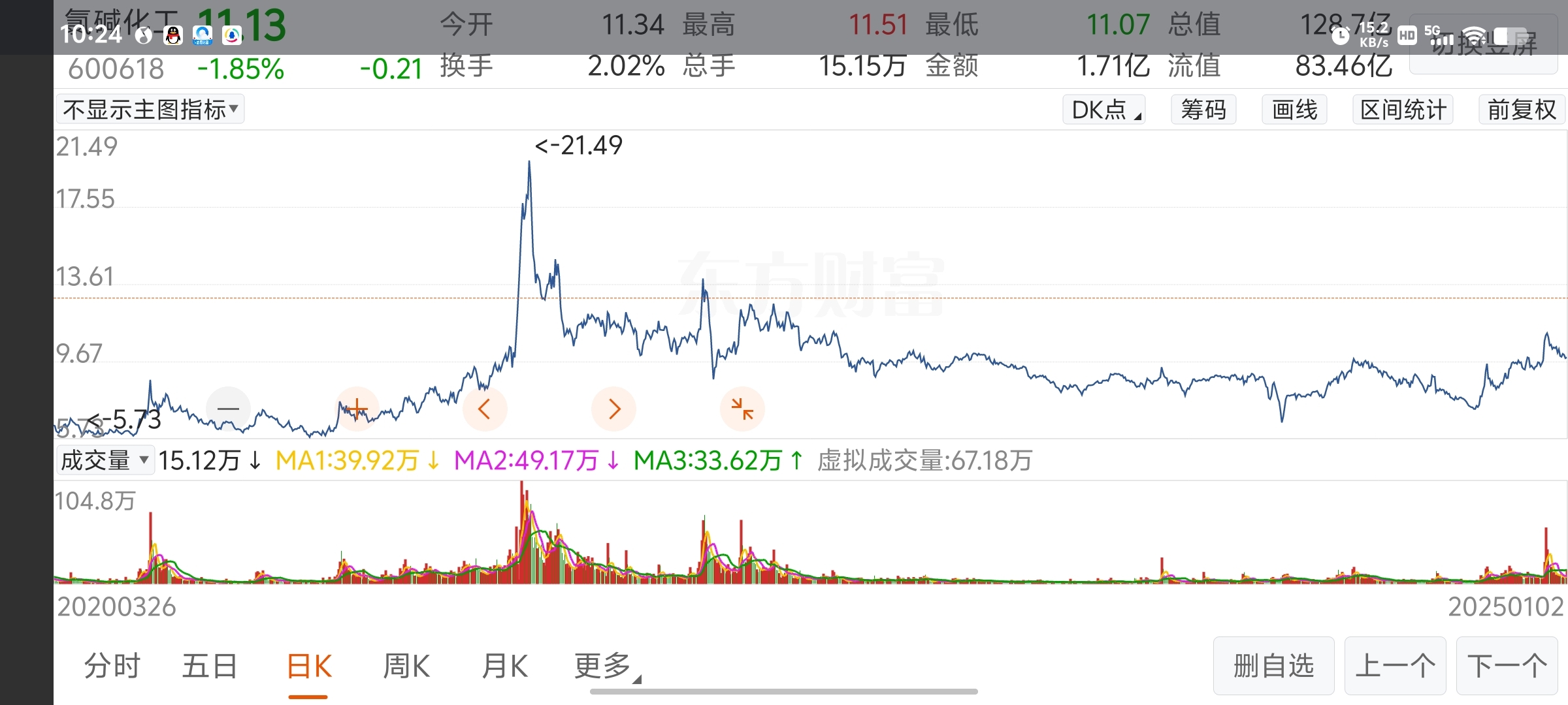 $氯碱化工(SH600618)$ 还有机会解套吗