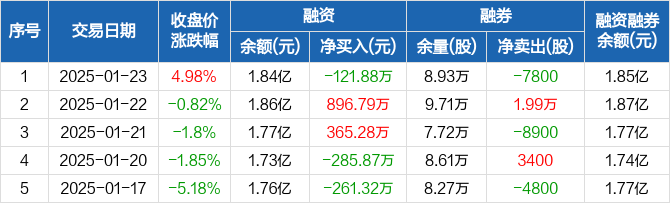 氯碱化工:融资净偿还121.88万元,融资余额1.84亿元(01-23)