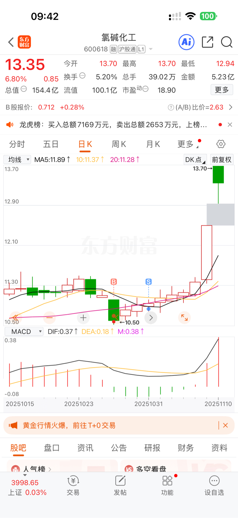 $氯碱化工(SH600618)$ 嫌这股无聊 早早走了 很烦