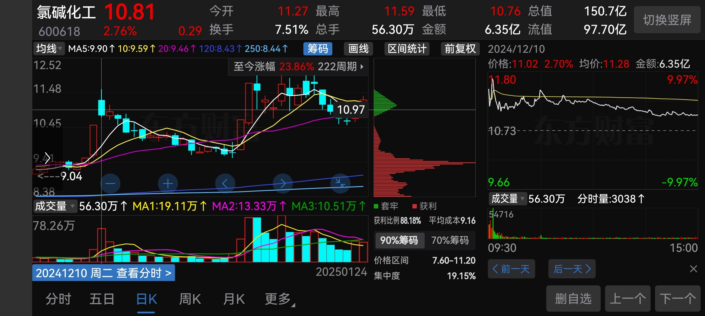 $氯碱化工(SH600618)$ 看看以前的一次涨停后的走势,分时图也非常类似