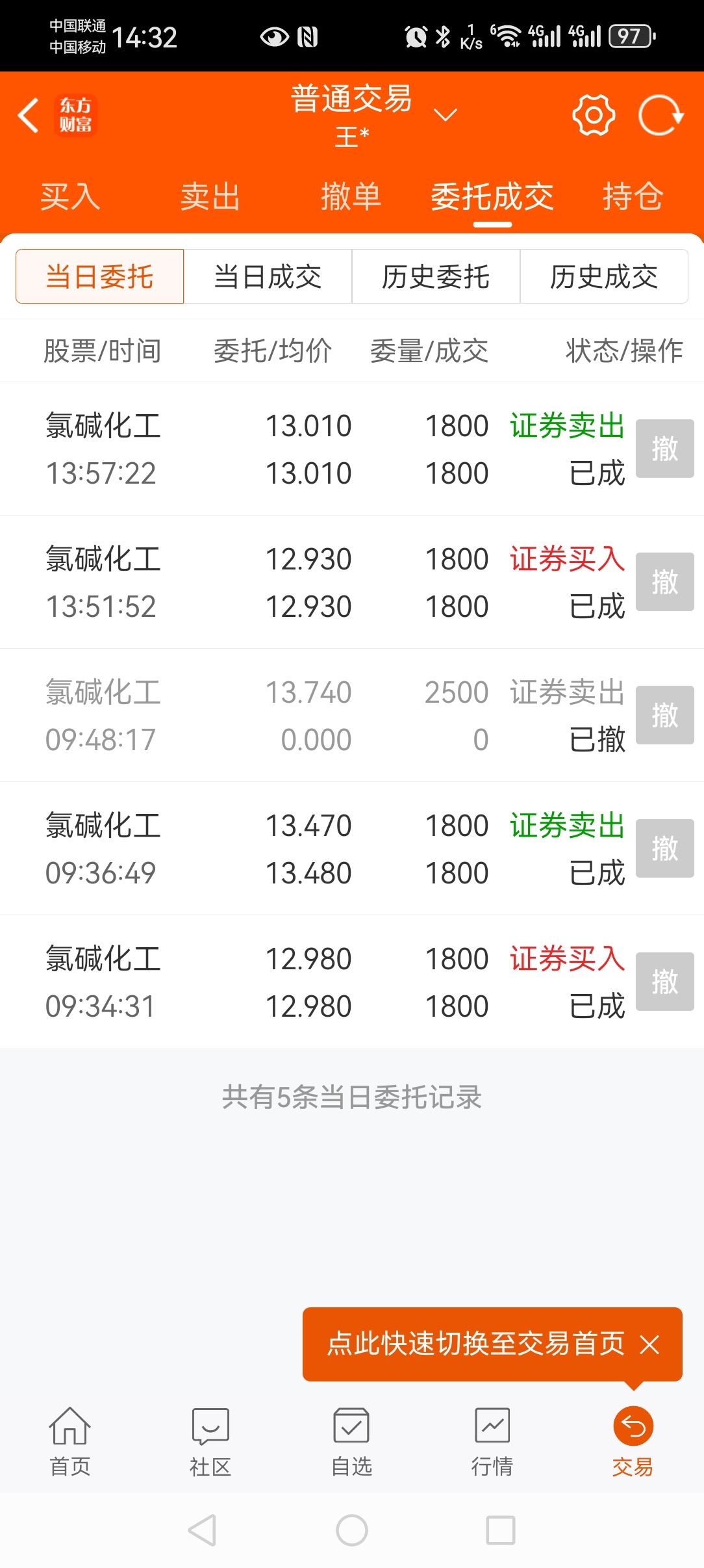 $氯碱化工(SH600618)$ 小一千元装兜里再说!