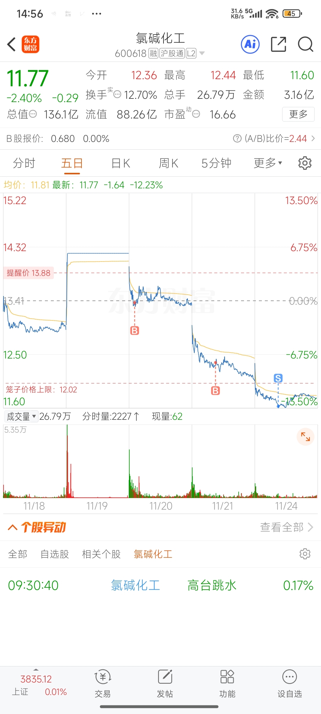 $氯碱化工(SH600618)$ 开盘没有跑,割肉在最低点了