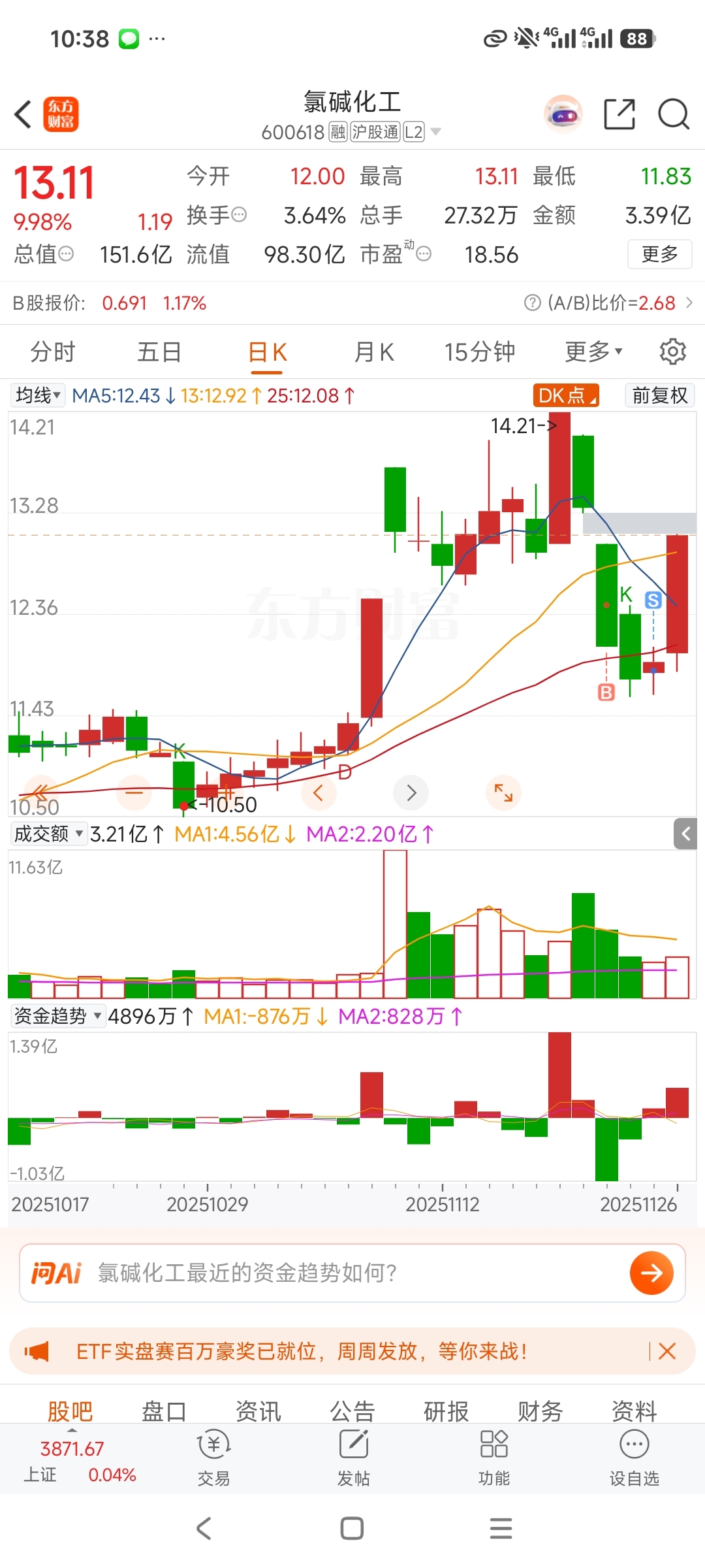 $氯碱化工(SH600618)$ 亏20万,没赚钱的命。。