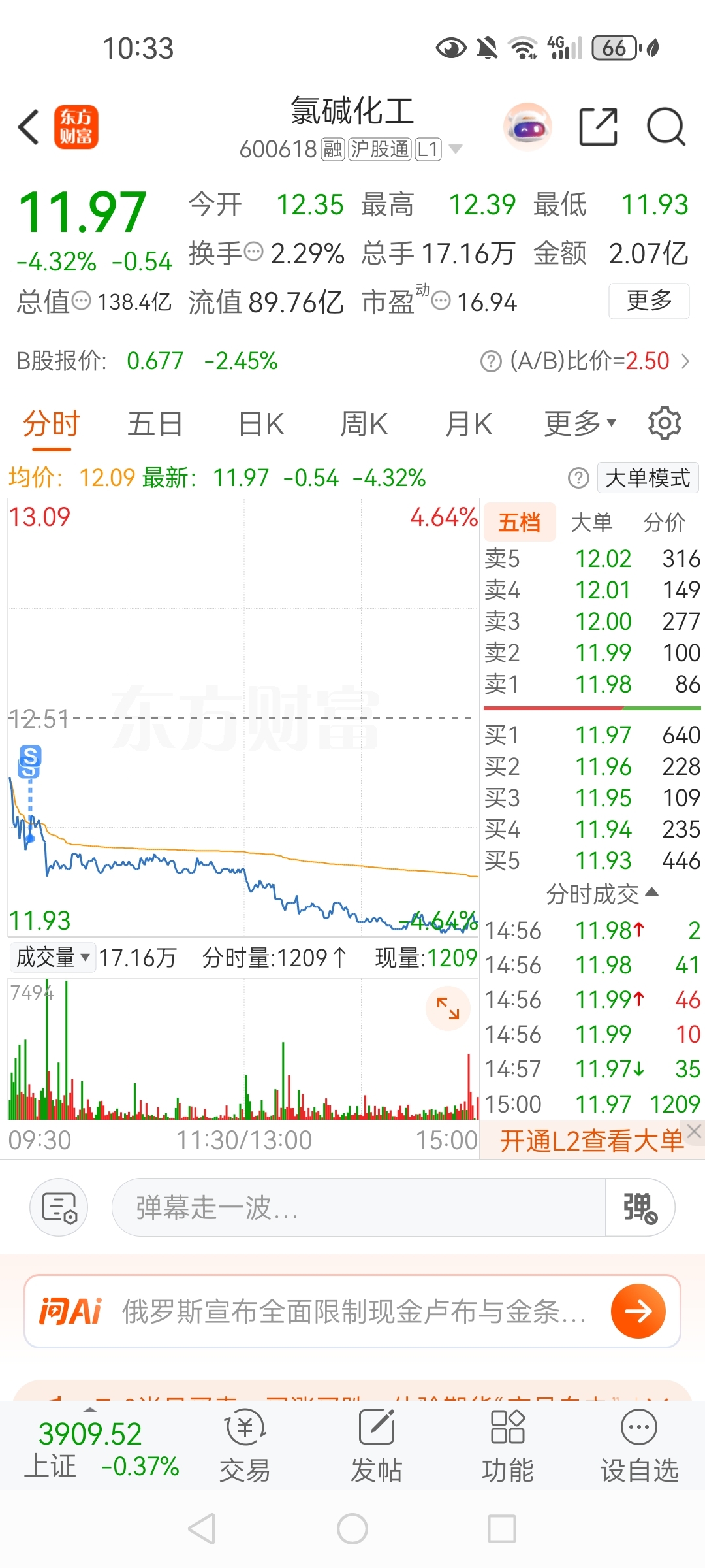 $氯碱化工(SH600618)$ 天天下杀,巴鈤的庄股