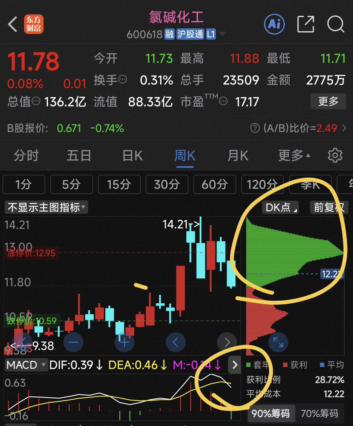$氯碱化工(SH600618)$ 下跌趋势,高位出货的票,碰了就是个死,那些在今年牛市大山顶套牢的散户,两年内能解套就不错了