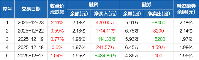 氯碱化工:融资净买入420万元,融资余额2.18亿元(12-23)
