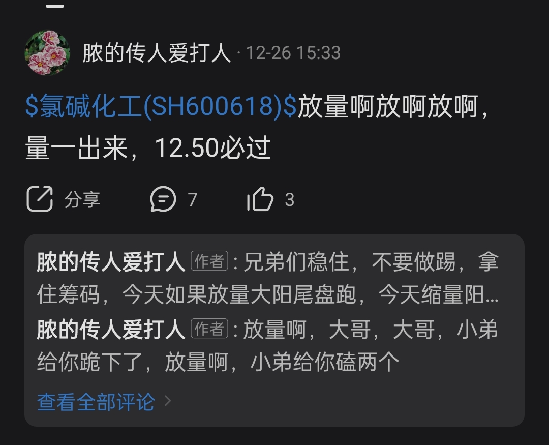 $氯碱化工(SH600618)$ 这人是把馆才本亏进去了吧,天天叫,笑死了,让你这种人回本,可能吗?庄家会吃定你