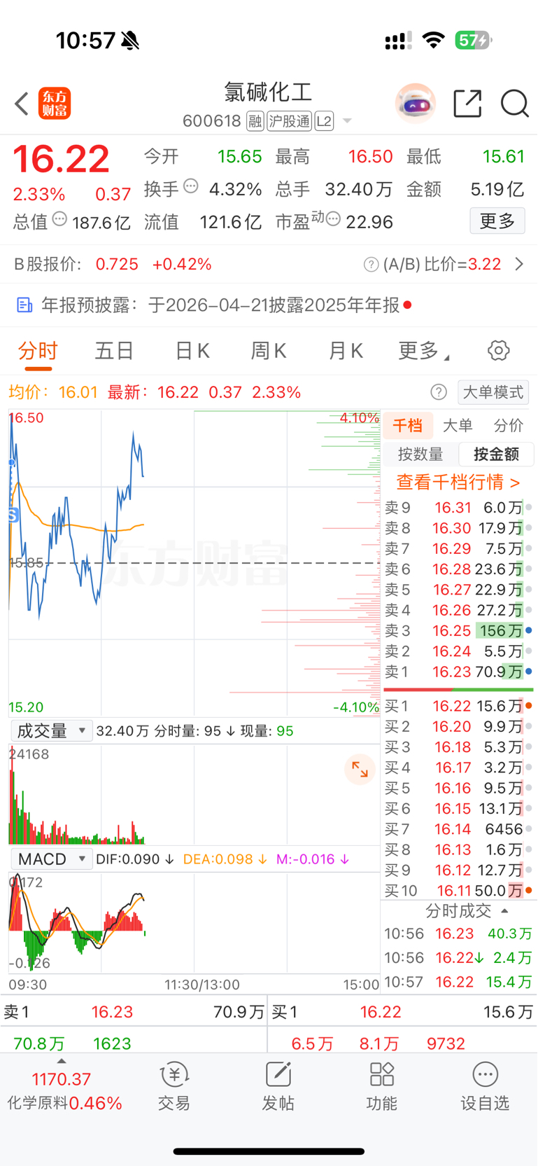 $氯碱化工(SH600618)$ 感恩。卖飞了,留下的发财!
