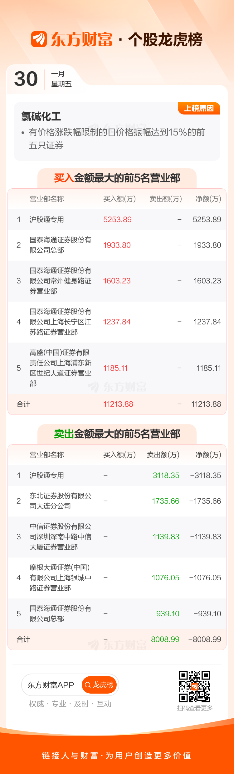 氯碱化工(600618)龙虎榜数据(01-30)