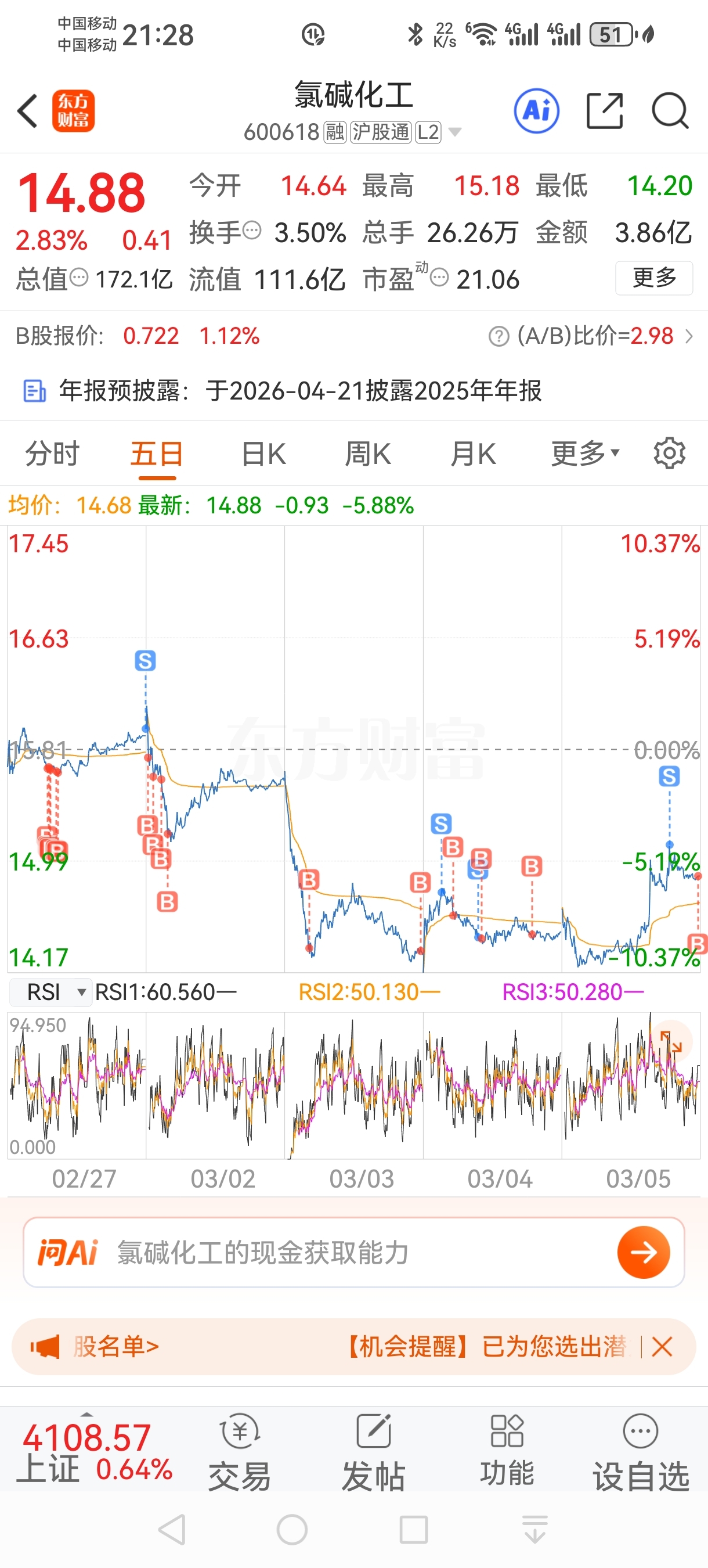 $氯碱化工(SH600618)$ 亏8个多点回本了,明天希望兄们都能吃肉过个好周末
