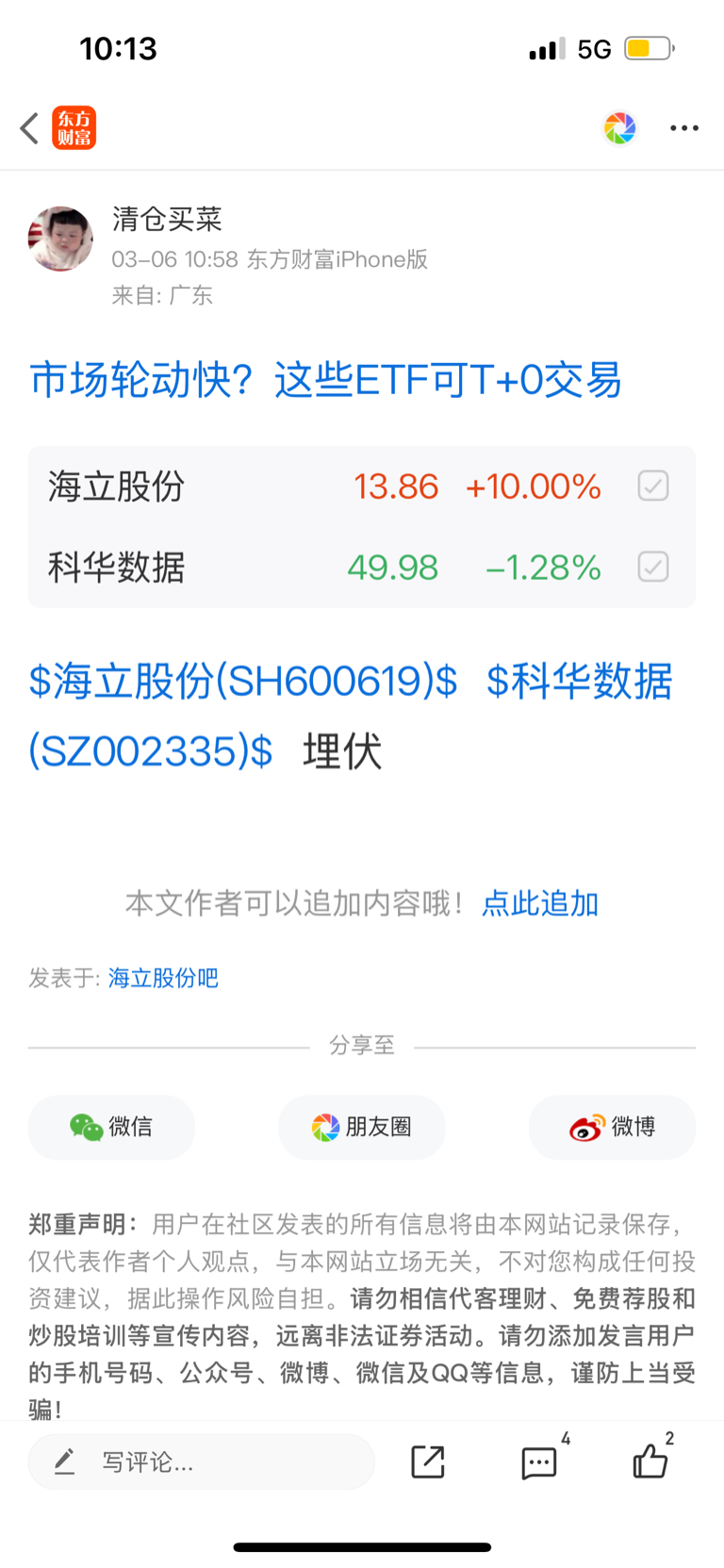 温馨提示: 1.根据《证券法》规定,禁止编造、传播虚假信息或者误导性信息,扰乱证券市场;2.用户在本社区发表的所有资料、言论等仅代表个人观点,与本网站立场无关,不对您构成任何投资建议。用户应基于自己的独立判断,自行决定证券投资并承担相应风险。《东方财富社区管理规定》