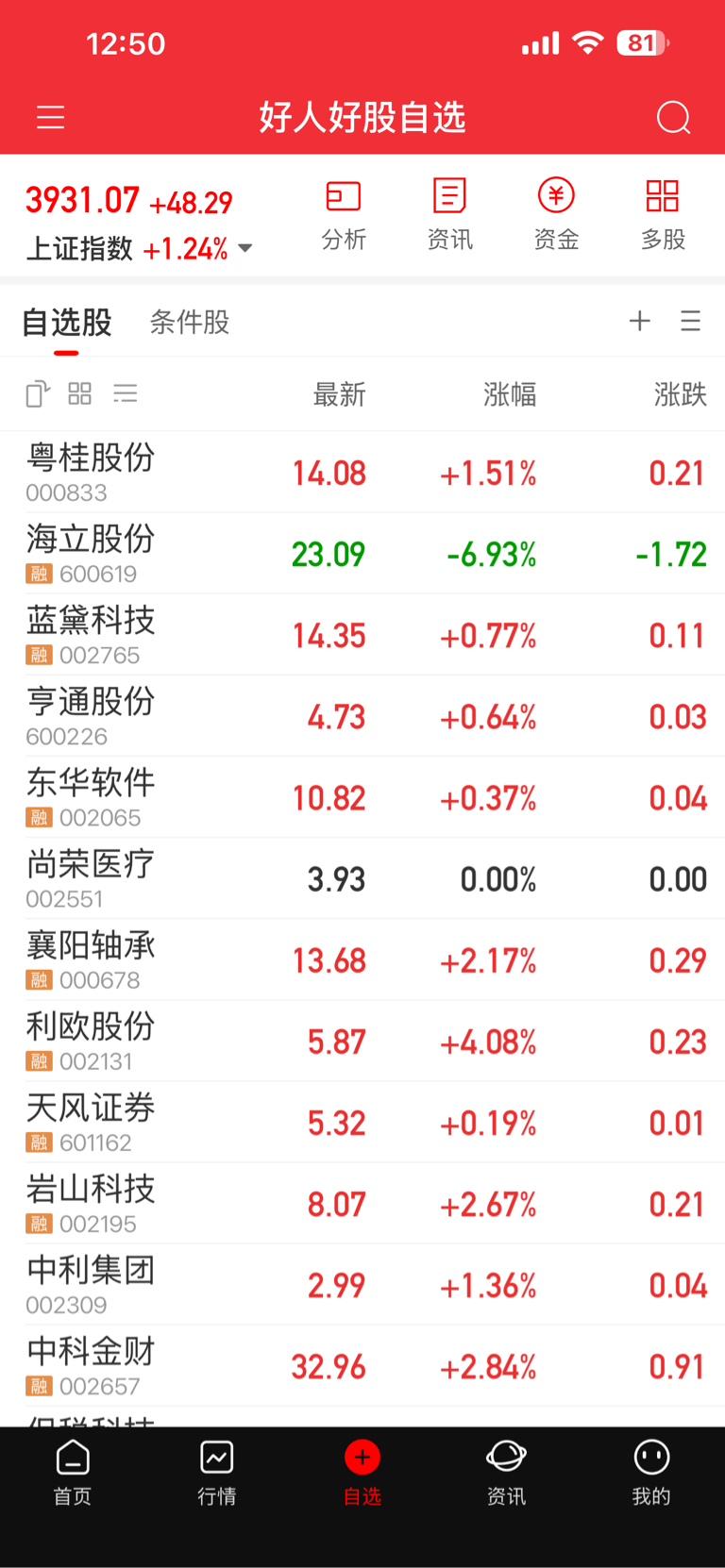 我自选股全是红的,只有我满仓干的海立一只绿,针的是绿毛龟,算命的都算不到这么准
