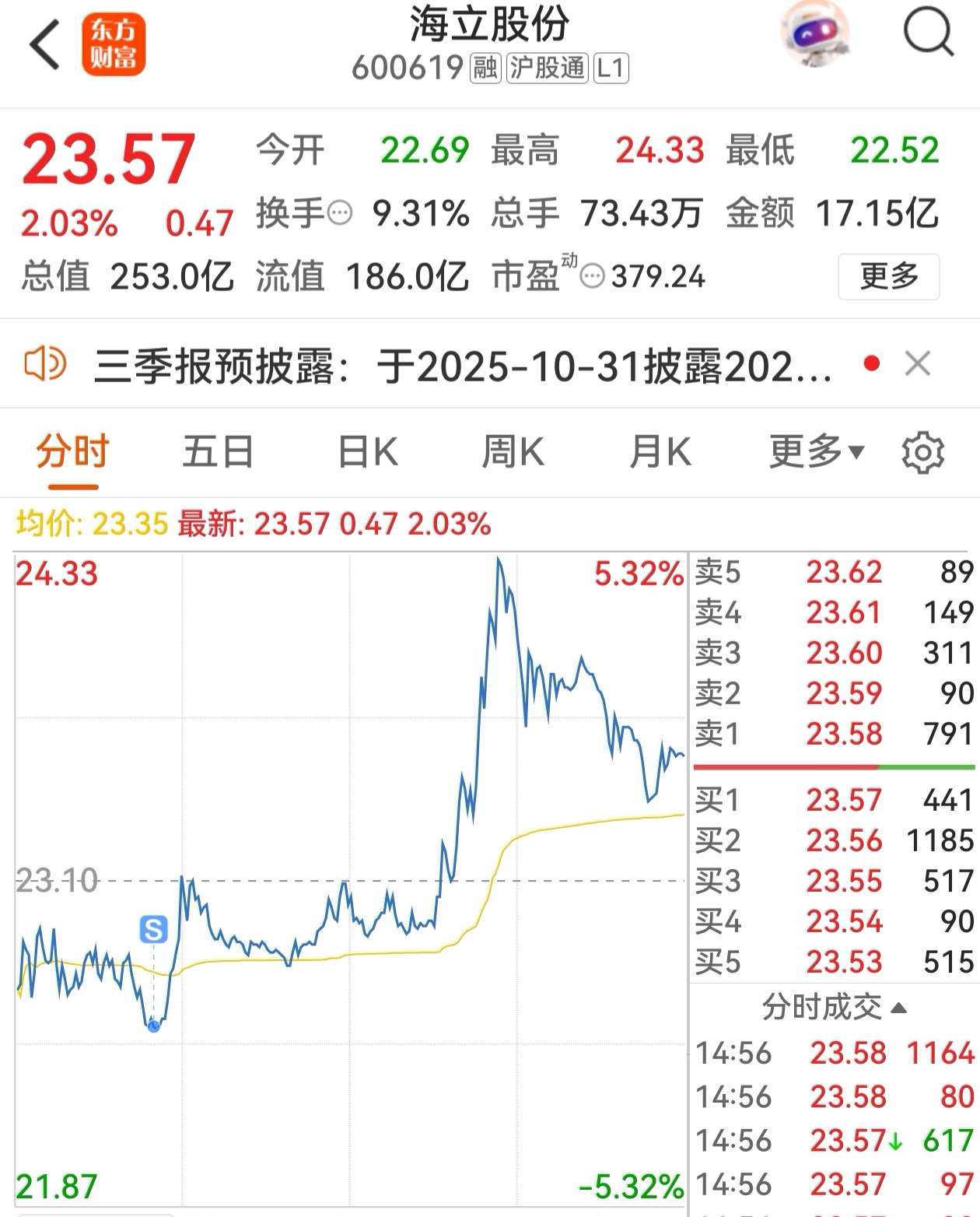 $海立股份(SH600619)$ 韭菜在此,买了就涨,拜拜咯