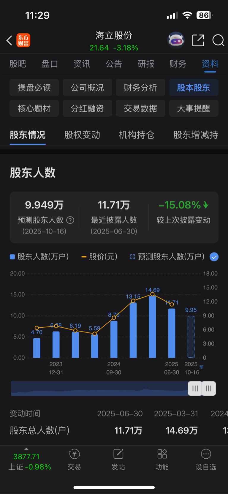 $海立股份(SH600619)$ 股东人数比昨天又少了1000多人 估计今天还是一样 主力已高度控盘。