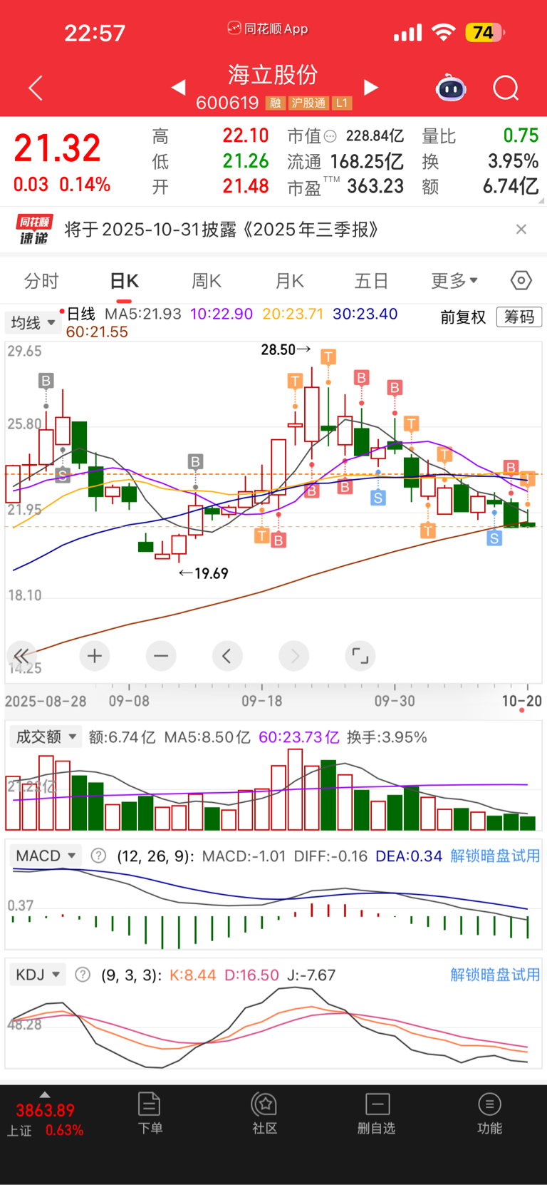 $海立股份(SH600619)$ 买了这票快2个月,一直都没走,只是盘中加减仓或做T,到今天为止还亏惨了,该死的借壳害惨我,只怪自己太贪,愿赌服输,尾盘科技股涨,他跌资金逃跑,明天危险