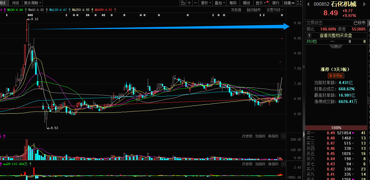 石化机械:石化机械作为中石化旗下油气装备核心供应商,直接受益于深地工程需求。背靠中石化,直接承接母公司油气勘探项目,订单确定性高。2025年母公司油气装备采购额达8亿元,且与中石油、中海油等核心客户长期合作,保障了传统业务的基本盘。从操作手法来说,石化机械的思路跟神开类似,都是做T字板形态的回封,前高价格是9.12,如果这地方做X盘,充分换手就是介入时机 。