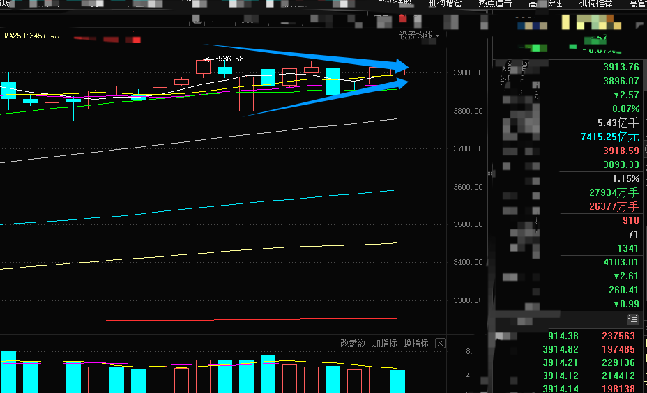 昨天指数犹犹豫豫,三分之二的个股都不太强,上证也是来到了前高压力位,从仓位管理的角度来说,从仓位管理角度,老K建议今日宜稳健,保持克制。毕竟昨日市场量能跌破1.7万亿,为8月5日以来首次,技术面看,上证指数正处于收敛三角形末端,此处大概率面临变盘。至于变盘方向,结合本周前几个交易日的盘面特征,想必大家心中已有判断。