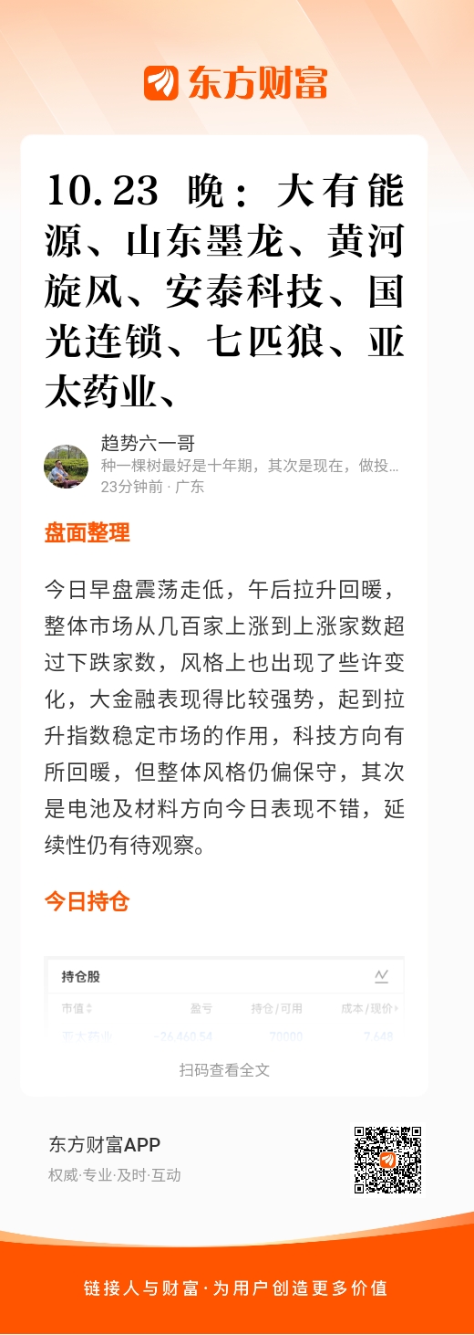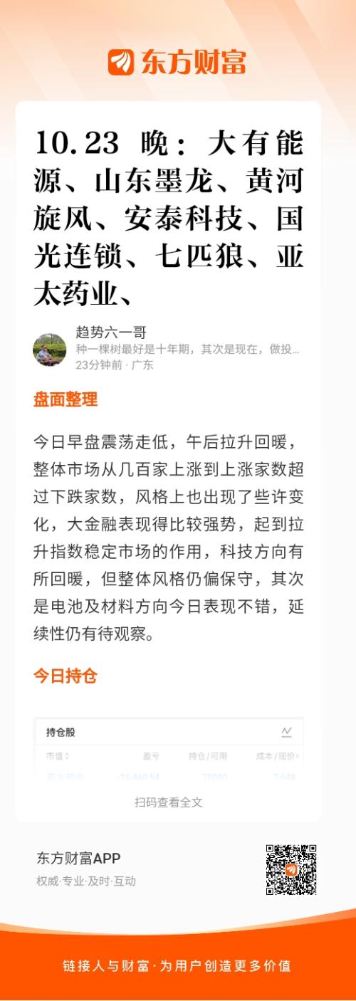 今日早盘震荡走低,午后拉升回暖,整体市场从几百家上涨到上涨家数超过下跌家数,风格上也出现了些许变化,大金融表现得比较强势,起到拉升指数稳定市场的作用,科技方向有所回暖,但整体风格仍偏保守,其次是电池及材料方向今日表现不错,延续性仍有待观察。