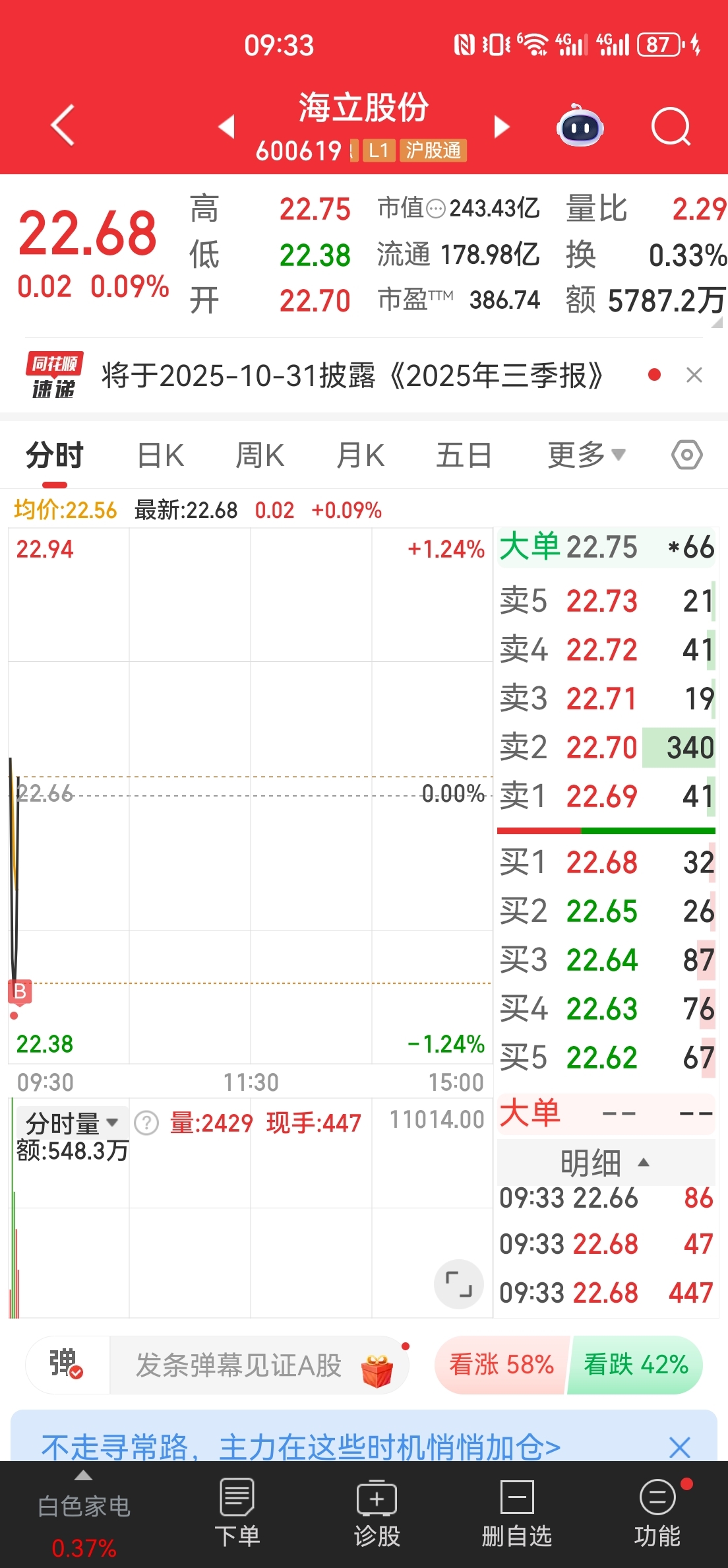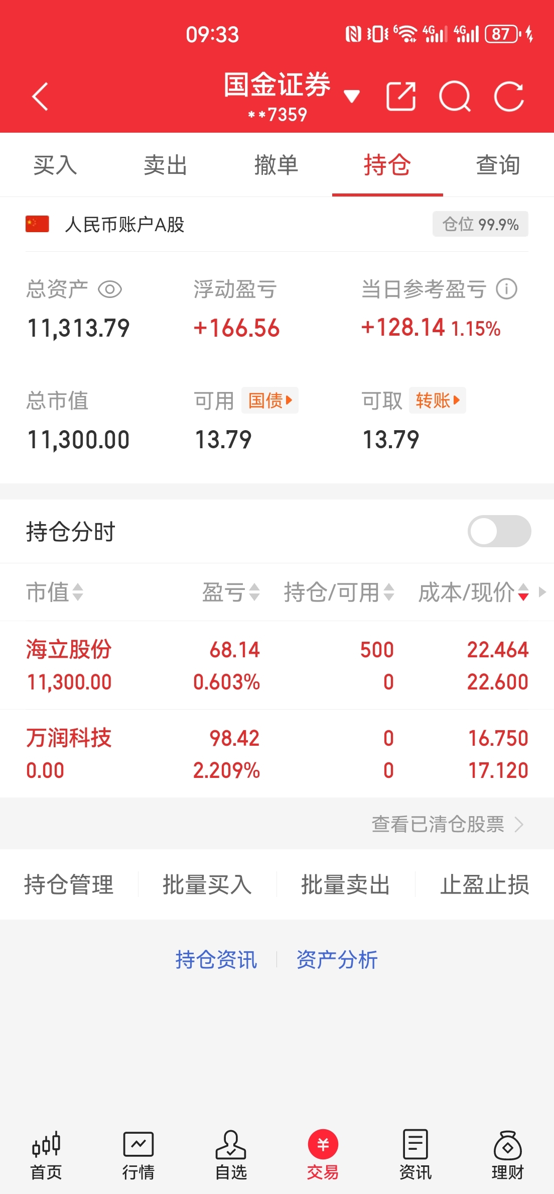 一万到一百万第八天,万润小肉走了,-1买入海立股份。