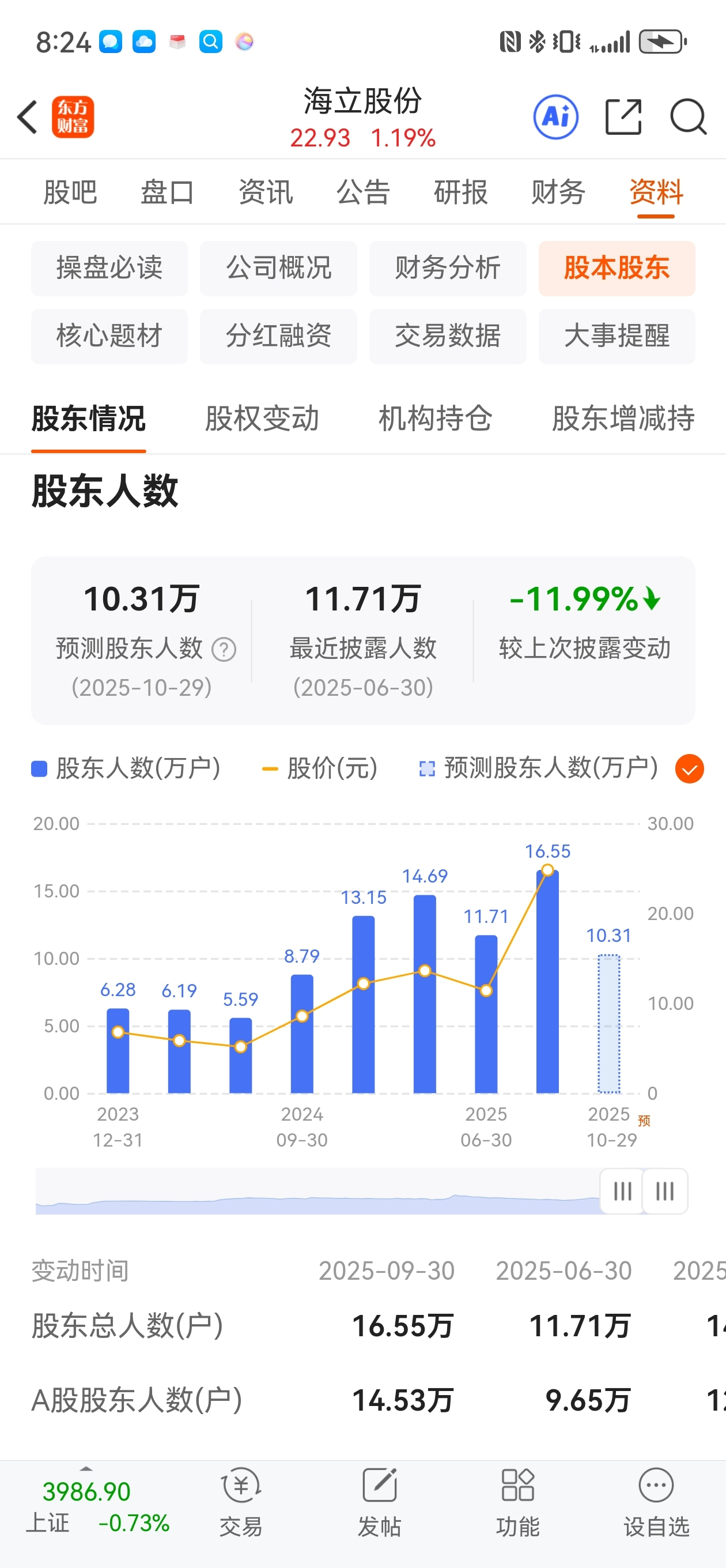 谁能告诉我为啥最新(10月29)股东人数减少50%?