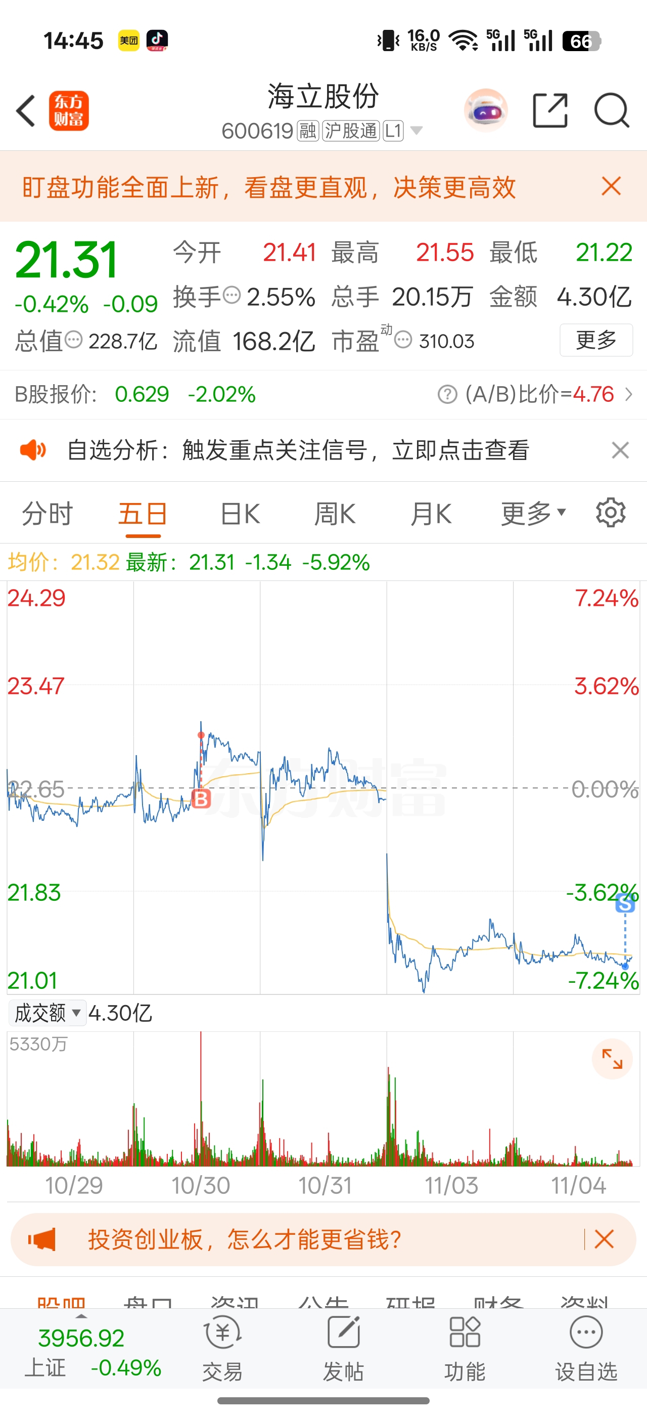 $海立股份(SH600619)$ 我走了,希望能涨吧