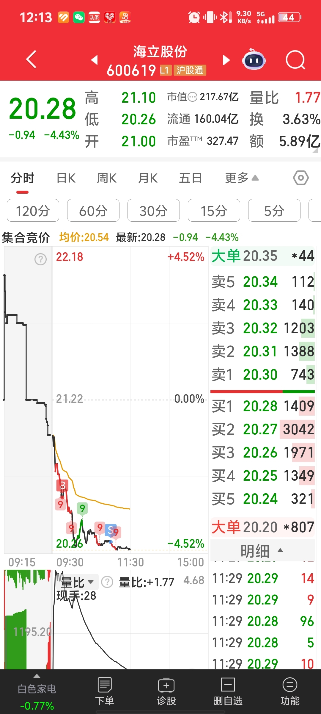 $海立股份(SH600619)$ 拿了一个月,亏惨了,日线跌多了,月线还高高挂顶上,真怕无休止的