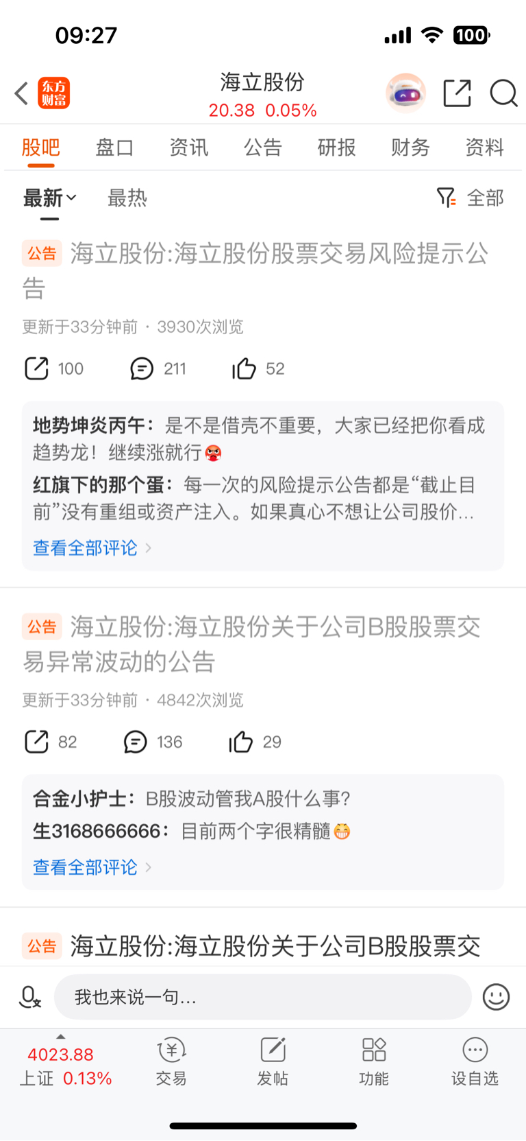 $海立股份(SH600619)$ 是不是有病 连发三条 不知道你们是否能看见
