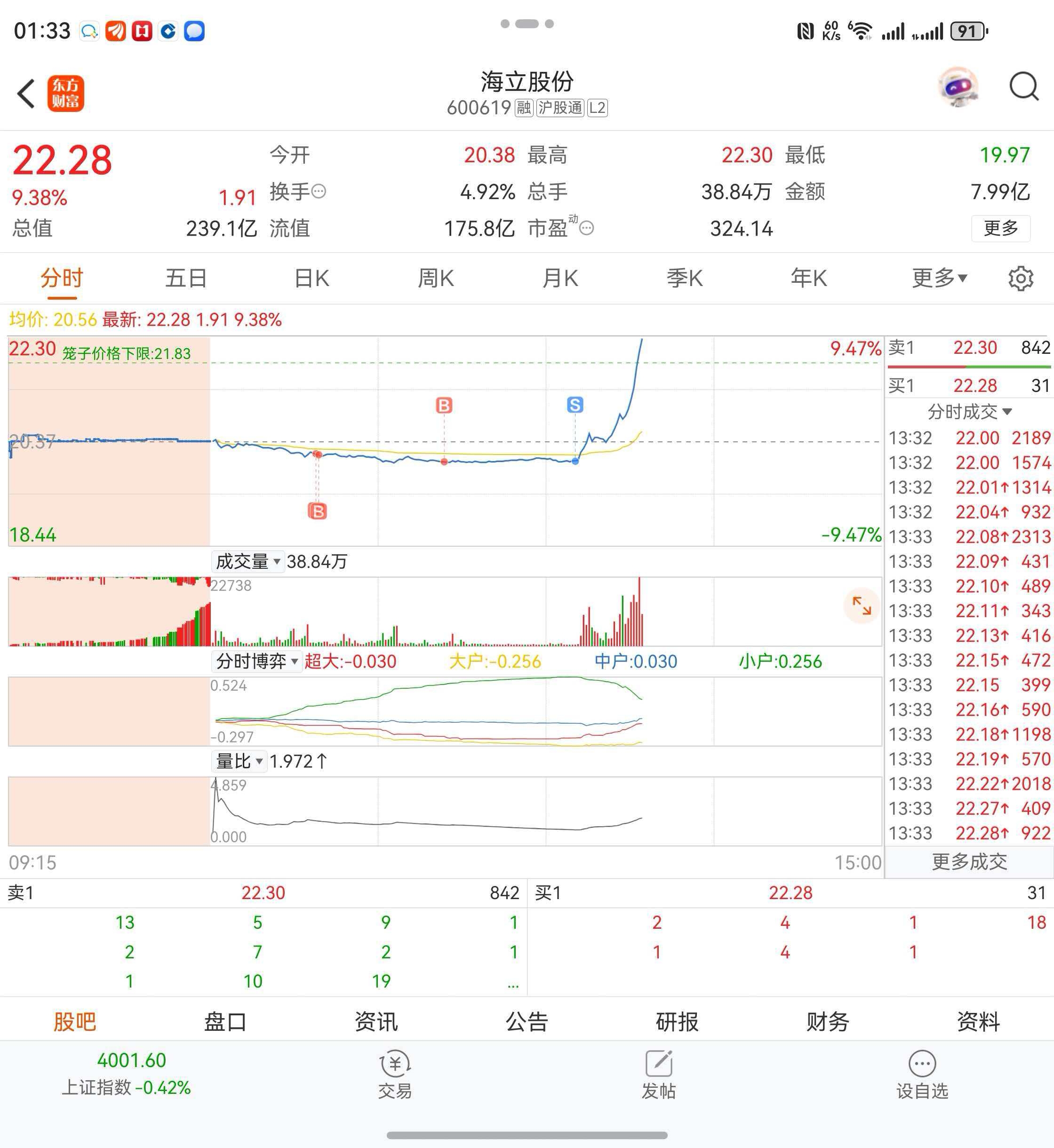 $海立股份(SH600619)$ 我卖飞了,没追高