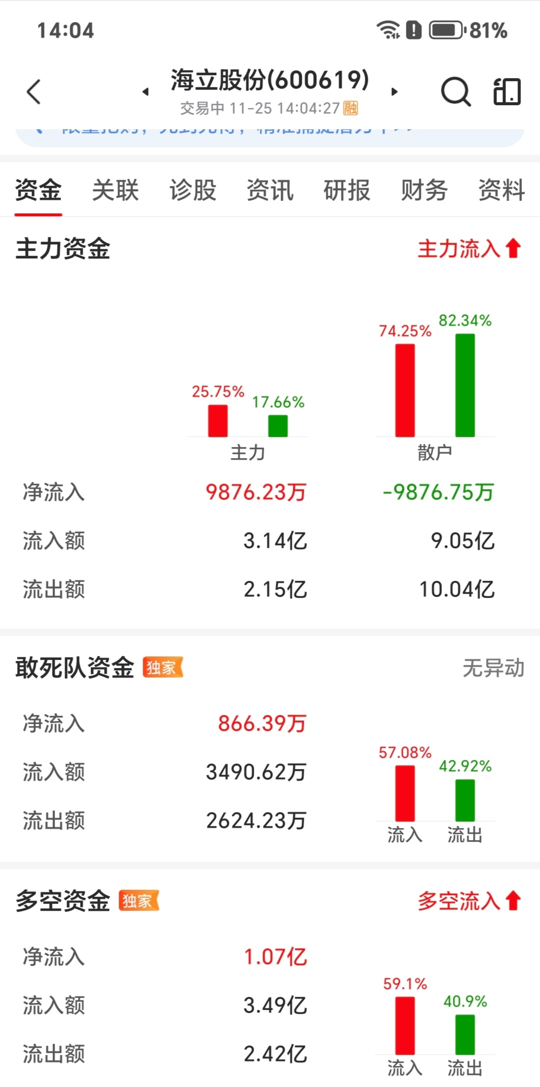 $海立股份(SH600619)$ 截止到2点,暗盘资金净流入1亿元,明盘资金净流出4千万。