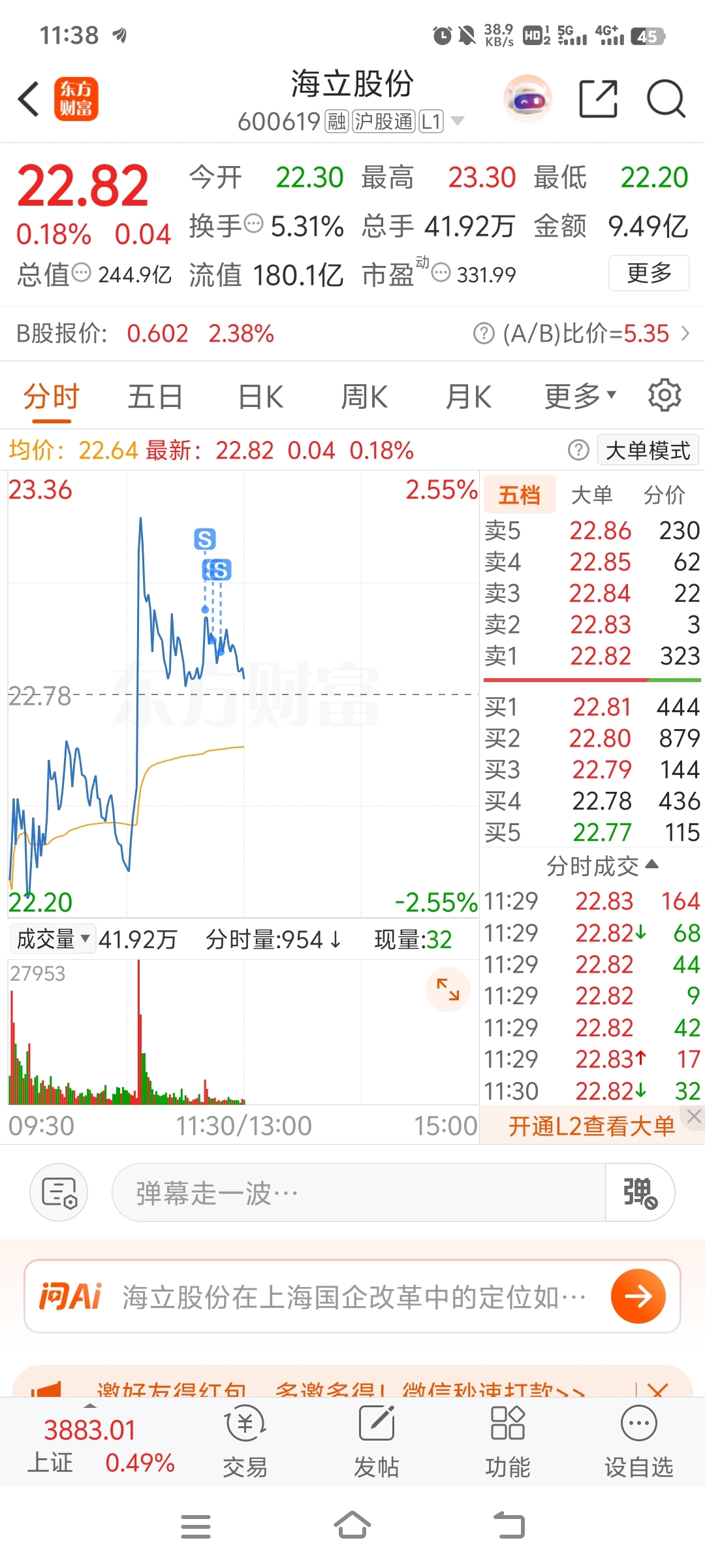 $海立股份(SH600619)$ 20.8的本,虽然没有卖在最高位,但也有收获,清仓了,获利了结,留下的兄弟吃肉,我空仓过周末去了