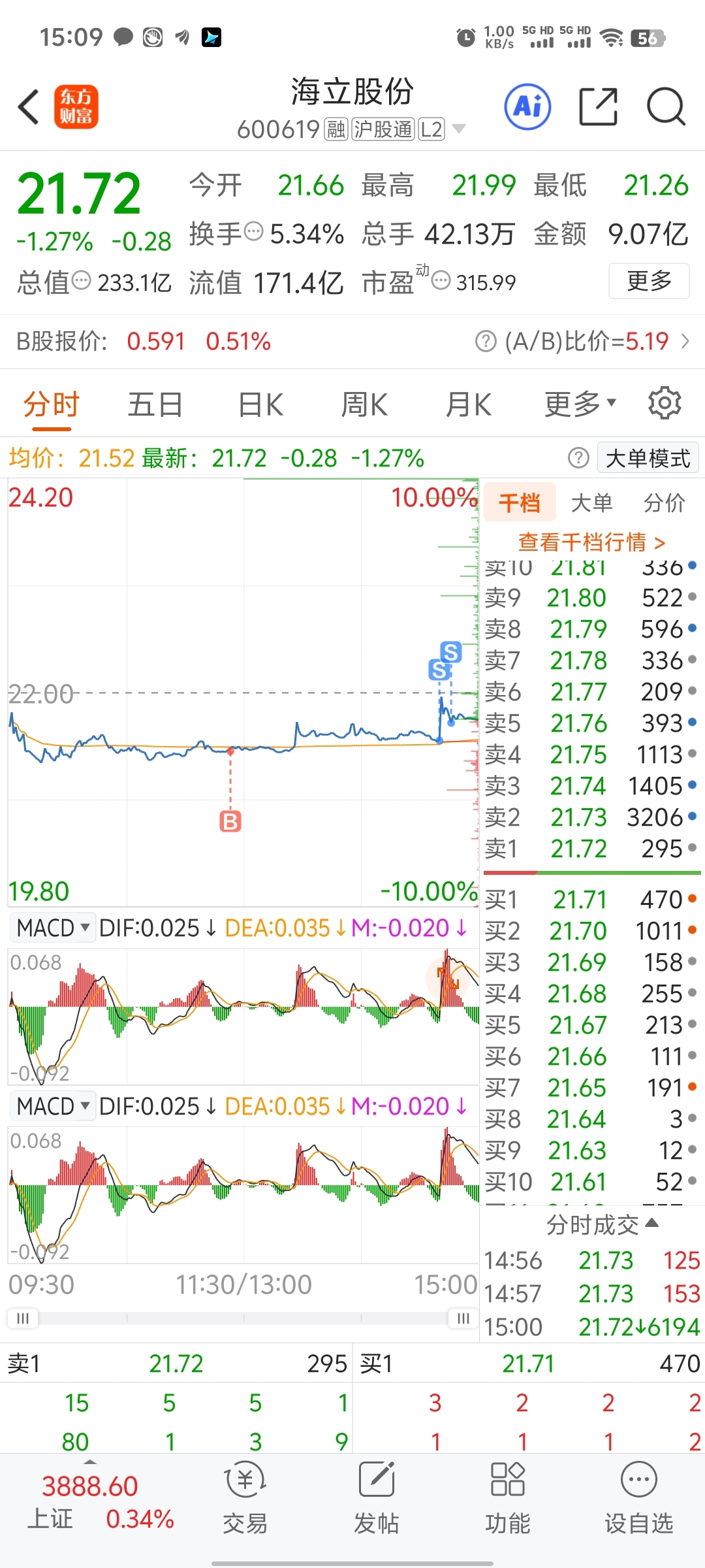 $海立股份(SH600619)$ 筹码交给你了,卖了你拉高了