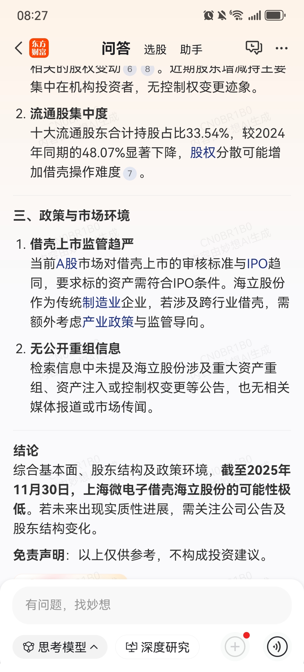 AI分析,目前借海立股份的壳上市的可能性极低了。