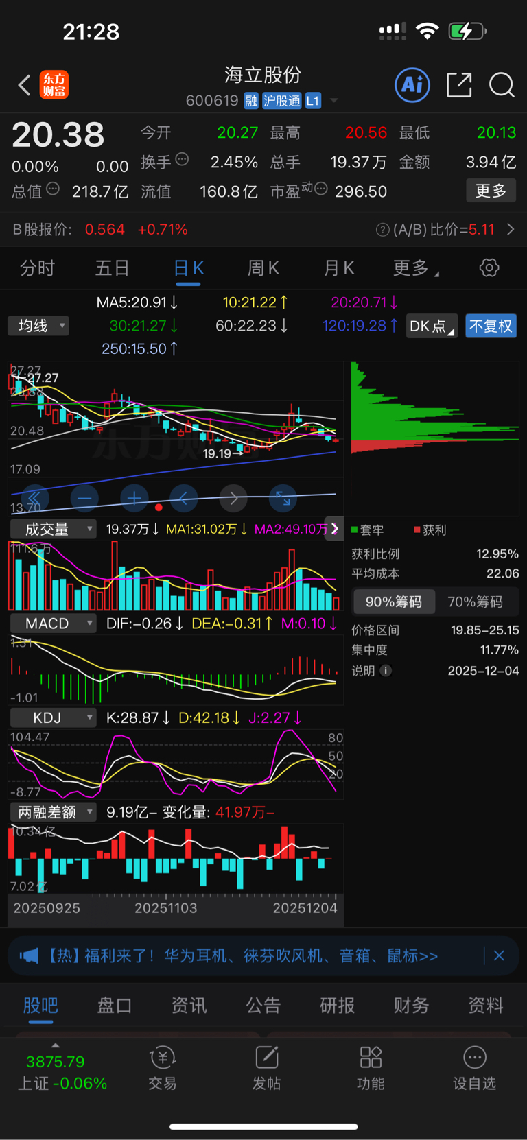$海立股份(SH600619)$ 地量十字星希望是底部,明天开始反弹到24-25