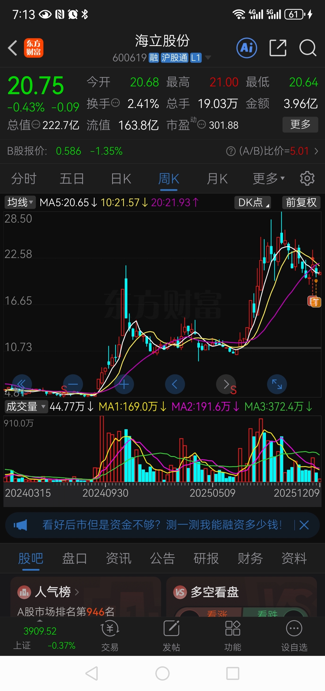 $海立股份(SH600619)$ 跌的多吗?基本面改善了吗,市盈率300多,想想就恐怖,如果上海微电子落地它家,海立该何去何从