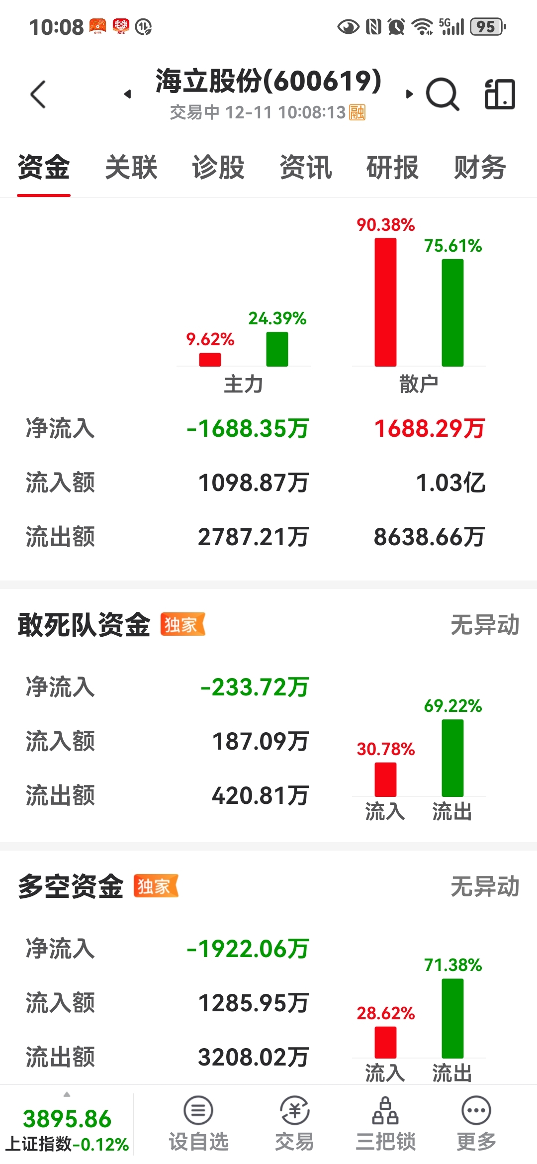 $海立股份(SH600619)$ 完全靠散户顶住了!