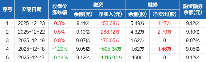 海立股份:连续3日融资净买入累计611.85万元(12-23)