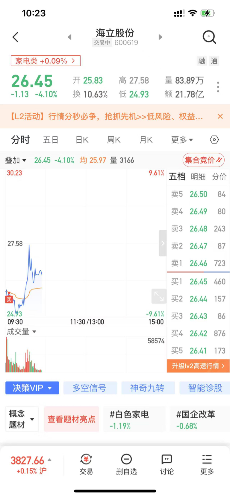 一天盖住一周的阳,守了几个月,25.7进来,惹不起21.7割了,在海立成功的躲开
