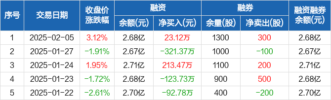 天宸股份:融资净买入23.12万元,融资余额2.68亿元(02-05)